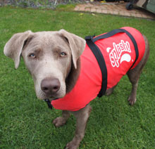 I managed to finally fill the doggy buoyancy vest left by my illustrious predecessor. The boss has been trying to fit it on me for months, and every time I've looked like a pea in a barrel. It seemed I would never grow into the ‘large” fitting.