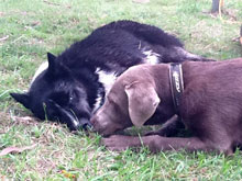 We ran and played and fetched and swam and looked swooningly into each others yellow/blue/brown-blue eyes; and rolled in the sand and ran through the pines and had a drink from the same bowl and ran some more and swam and fetched and …. Fell down on the grass exhausted. Then we ran and swam and fetched and swam some more. It was a magical end to a late summer day.
