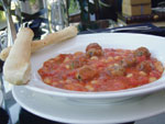We sat at long tables (now very trendy) in an old converted stables in the country, feasting on local wine and extremely rustic local cuisine like baked chicken combs, horse meat and onions. It wasn't until afterwards that I had the menu translated. This event was the inspiration for this week's cannellini bean and tomato, lamb meatball and tomato one pot wonder and I'll let you wonder what the meatball is a substitute for...