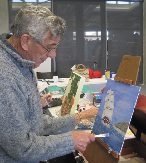 New member David Sinclair is enjoying his return to painting after many years. Hailing from Te Awamutu, David attended art classes in the 1980s and painted in oils for seven years. After a long gap he now has plenty of free time to restart his interest and is trying out acrylics for the first time. He is enjoying belonging to the art group with all it has to offer.