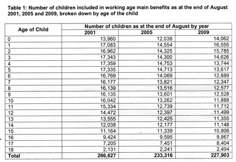 The number of children living with beneficiaries is up 15,000 in the past year to 226,000 in April 2009.