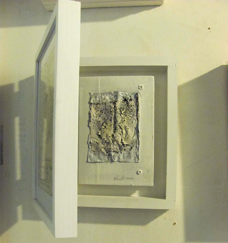 The works are double framed, or boxed in cases behind glass and, when opened, many expose another work inside.