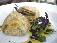 Crispy Pancake of Blue Cheese, Mushroom, Ham