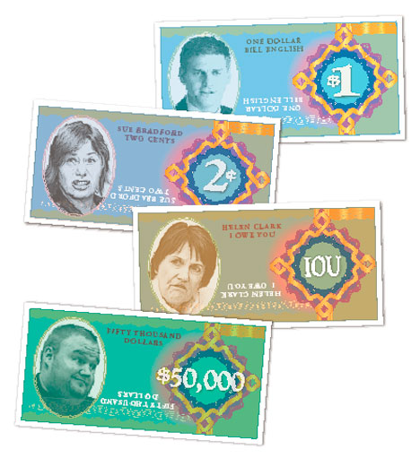 The new $50,000 note features Kim Dotcom. This will be a very handy note for the multimillionaire to use, since he makes a lot of donations of that amount. Including to the Christchurch Earthquake mayoral campaign, to an injured rugby player in a wheelchair, and to the John Banks' electioneering fund.