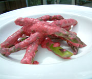 become bitter if over processed. Cool the asparagus by plunging in ice water then combine with the fabulous dressing-yum yum.