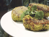 Cover the chickpeas with water and boil until tender. Drain well and blend with all the remaining ingredients. Form into shapes and test by shallow frying on an oiled hot grill. Mixture will form a nice crust once it's the right consistency. Adjust with extra polenta if required.