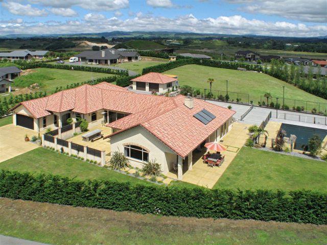 Teens can play loud music in their entertainment room at the end of their own three bedroom wing while you entertain at the other end of your home in massive living areas open all sides to enclosed courtyard, covered patio, the beautiful pool complex and floodlit tennis court.