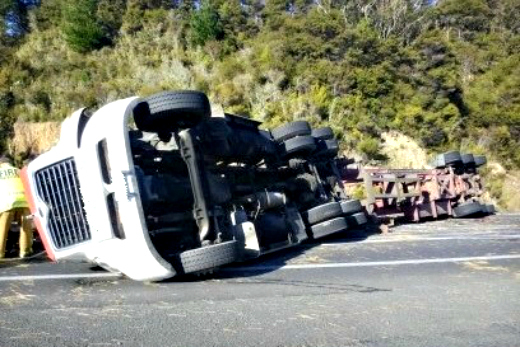 UPDATED – 12.35pm: The driver of a truck which rolled on State Highway 27 near Kaihere this morning has been airlifted to Waikato Hospital in a moderate condition.
