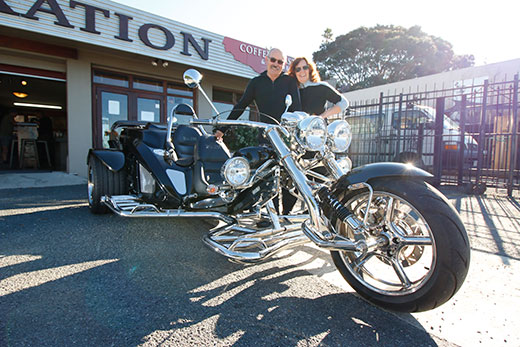 ‘Boom' with its owners, Tanners Point trikers Lee and Yvonne Gilmour. Photo by Bruce Barnard.