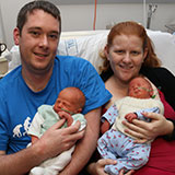 Kate Ryan and Paul Klein welcome their sons Thomas Jack weighing 2410g (5lbs 5oz) and George Andrew weighing 2800g (6lbs 3oz) on June 23.