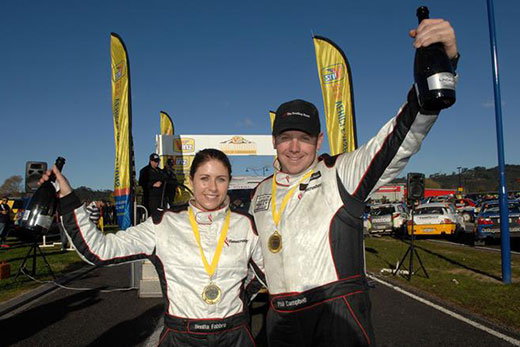 Rally duo Venita Fabbro and Phil Campbell celebrating after the 2014 Coromandel Gold Rush Rally of NZ. Photo: File