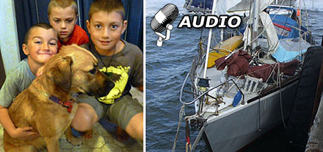 Missing sailor Paul van Rensburg's dog, Juanita, is in the care of a family at the Chatham Islands - pictured here with Kaleb, Elias and Noah Haerewa.
