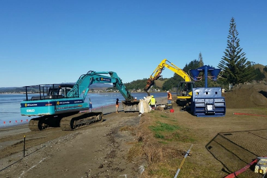 The Thames-Coromandel District Council says the coastal erosion wall currently under construction at Brophy's Beach is progressing well.