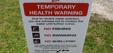 Health warning signs are in place along the Wairakei stream bank in the vicinity of Gibson Place to Emerald Shores because of poor water quality.