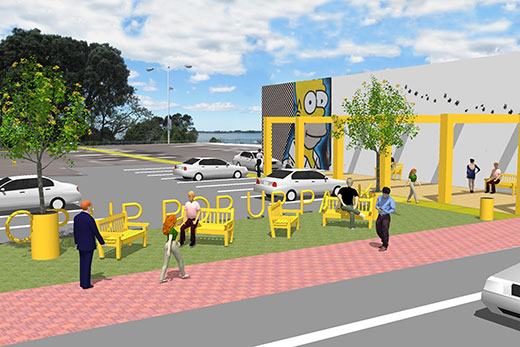 The temporary pop-up park on Devonport Road will get a splash of colour this weekend as part of a collaboration with Creative Tauranga.