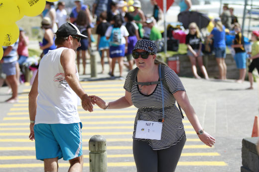 Grace Murray-Cawte is welcomed to the finish line. Photos: Cameron Avery.