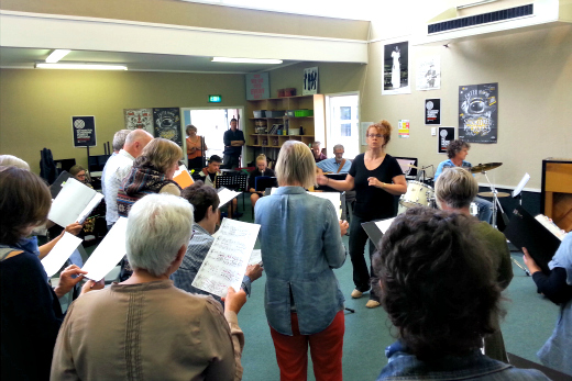 The Mercury Bay Community Choir rehearsing with conductor Carolyn Medland for their upcoming Concert & Tea Dance with the Mercury Bay Big Band which is taking place on Saturday. Photo: Supplied