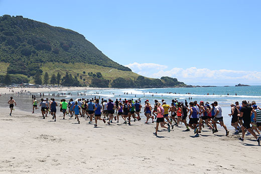 The Mount Maunganui King and Queen of the Mount is about 4.5km run along the beach and up Mount Maunganui.
