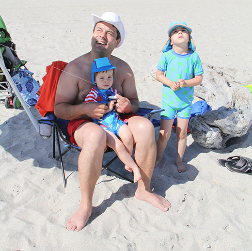 Kite flying Dorrel Cioban with sons Gabriel, 2, and David, 5, now living in Hamilton but originally from Romania.