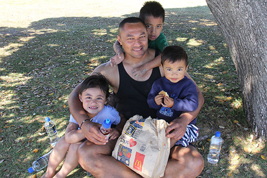 Joe Siuvelio holds sons, Nevaeh, 3, and Holy, 1, with Joseph, 4.
