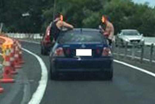 'Two male passengers in a southbound Lexus heading from Pukekohe to the Waikato to celebrate New Year's Eve had started drinking early and were sitting outside of the car on the windowsilld, facing each other as they drank their beers over the car roof and gestured to other motorists in a 70km/h stretch of road works at Rangiriri.”