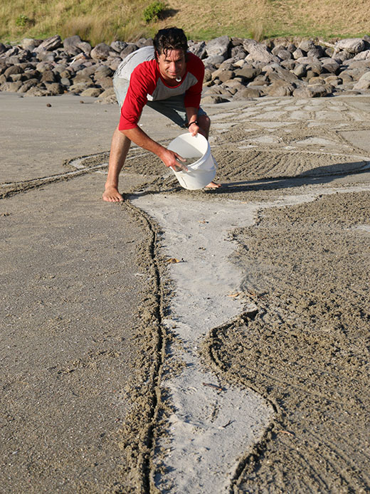 The 42-year-old 3D sand sculpture artist creates optical illusions on Mount Maunganui beaches at low tide before they disappear with the waves – a concept Jamie says many can't quite grasp.