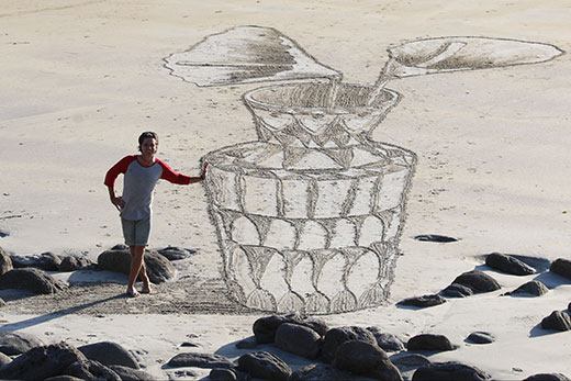 About three years ago, Jamie was inspired by a group of artists in New York who transformed an entire street into a 3D world of chalk drawings and decided to bring 3D to the beach.
