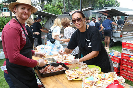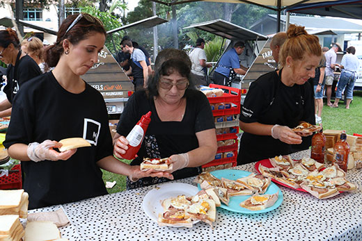 Kamae Harry, Kathy, Cauewell, and Merly McGarvey, serving up bacon and egg sandwiches.