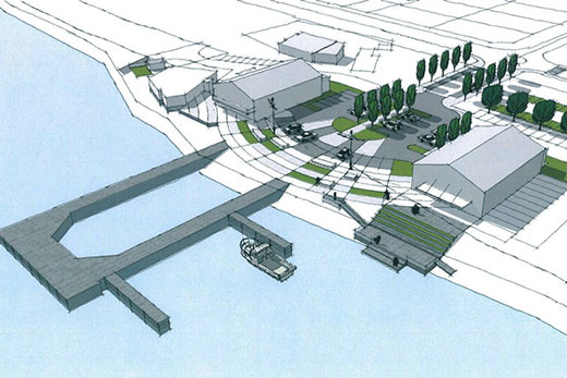 - Construction of a nautical-themed central public plaza linking to the wharf facility;