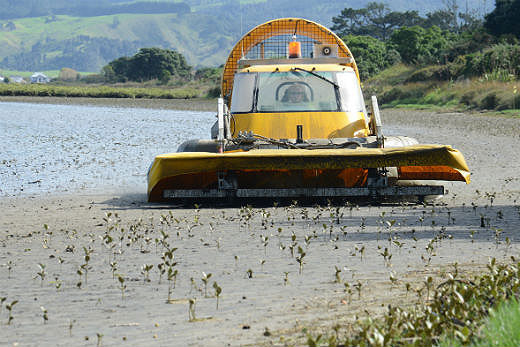 Auckland-based company Fieldmaster designed the solution which is a purpose-built hovercraft fitted with a mangrove seedling mowing unit. It’s the first of its kind in New Zealand.