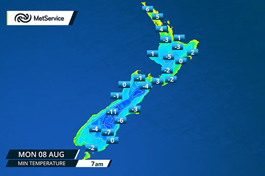 The freezing temperatures can be attributed to the weekend's brutal polar blast that saw the mercury drop to -7 degrees in some places in the South Island.