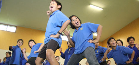 Merivale super haka (front, from left) ten-year-olds D'Arcy Hika-Munroe and Quintahl Barton.
