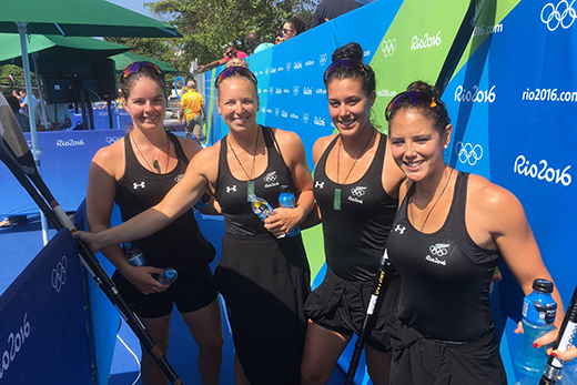 The New Zealand K4 kayaking crew, from left: Aimee Fisher, Caitlyn Ryan, Kayla Imrie and Jaimee Lovett. Photo: NZ Olympic Team/Twitter