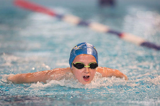 Catlins Area School swimmer Ryan Dey competes in the 100m butterfly at the NZCT AIMS Games heats in Tauranga. Photo: Jamie Troughton/Dscribe Media