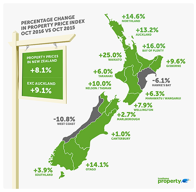 'The Hawke's Bay and the West Coast struggled this month, dipping six per cent and 11 per cent respectively when compared to the previous year. Meanwhile, the rest of the country saw pretty strong activity, driving an overall increase of 8 per cent year-on-year.”