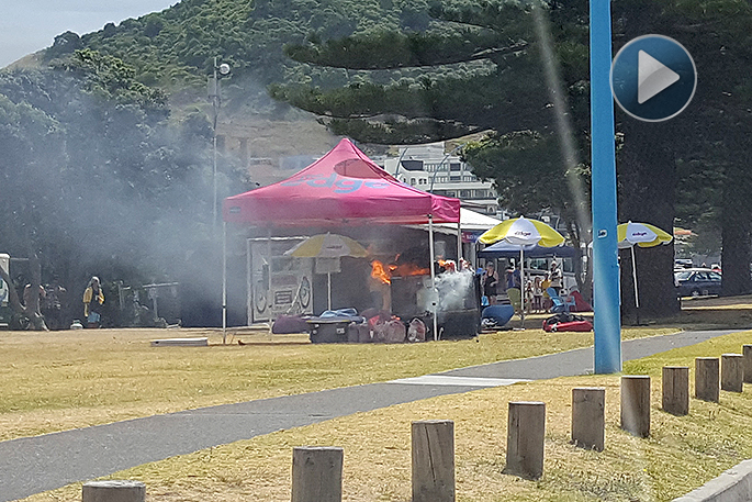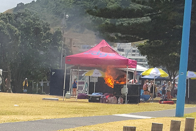 It was a fiery scene for some beach goers yesterday with a barbecue fire at the base of Mount Drury.