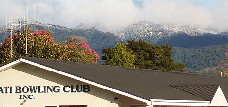 Snow in the Kaimais, beyond the Katikati Bowling Club. Photo taken at 9am by Erwin.
