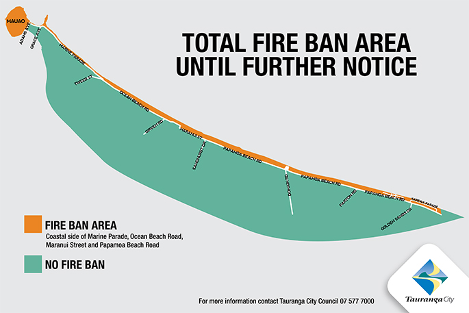 A total fire ban is now in place along the coastal strip of Mount Maunganui and Papamoa until further notice.