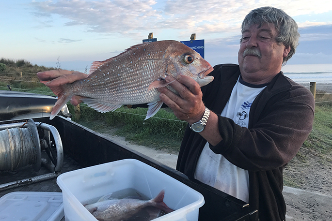 This morning we're filming our weather update at Harrison's Cut in Papamoa where Barry Harford and his fishing mates go to catch their early morning snapper.