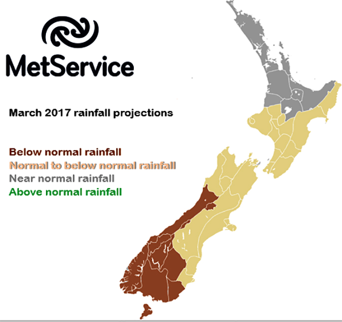 Elsewhere, March rainfall should lie near average to below average, overall. Temperatures should run near average to above average across New Zealand. Overall, a drier than usual March is signalled for the west and south of the South Island.