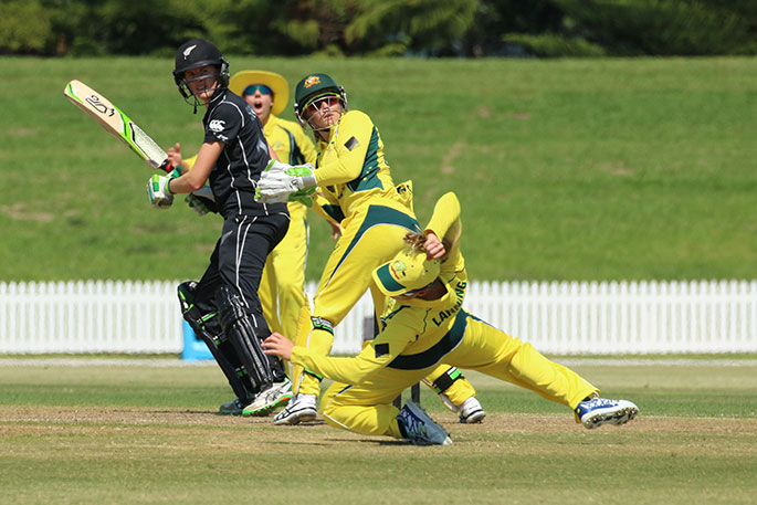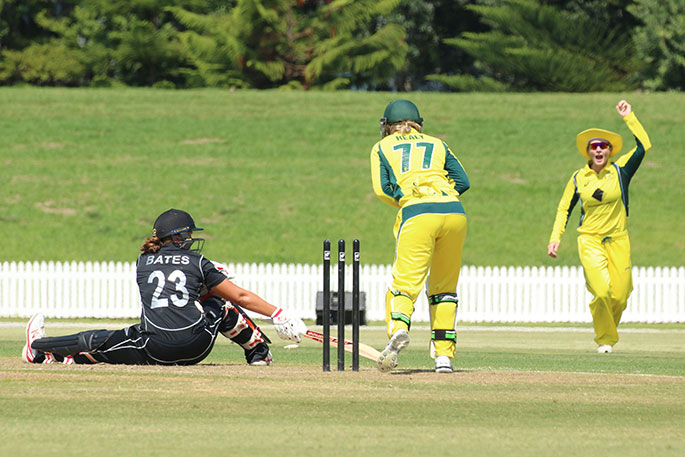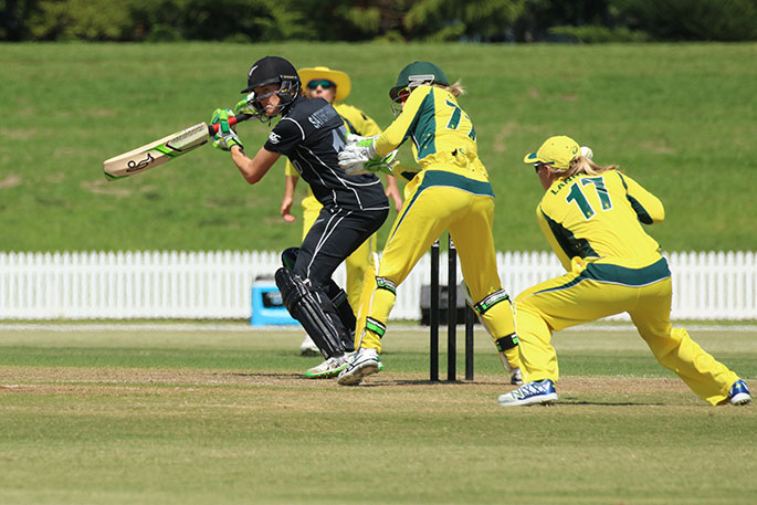 She was central to the White Ferns innings and received good support from Katey Martin (43), Katie Perkins (38) and Suzie Bates (35).