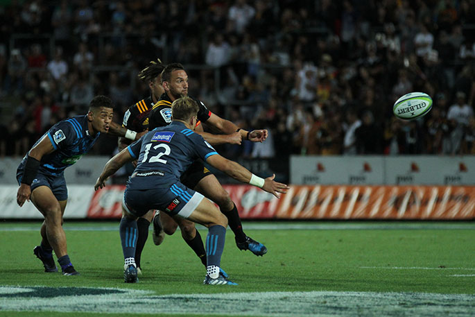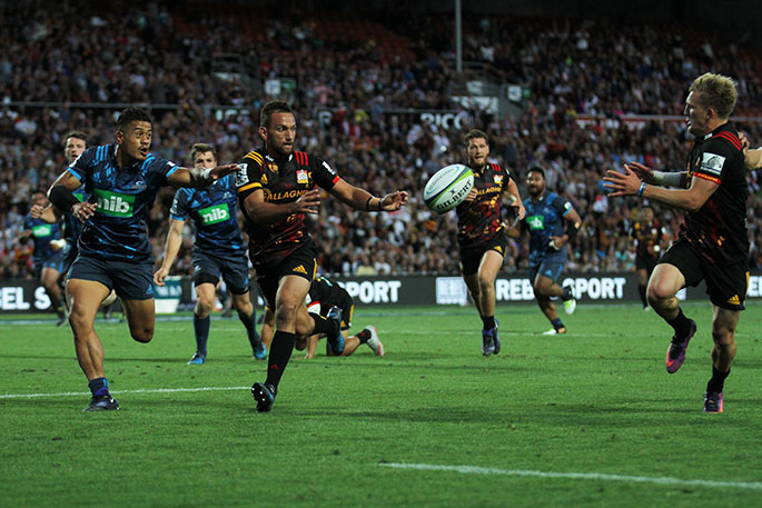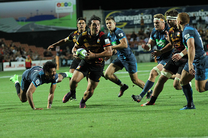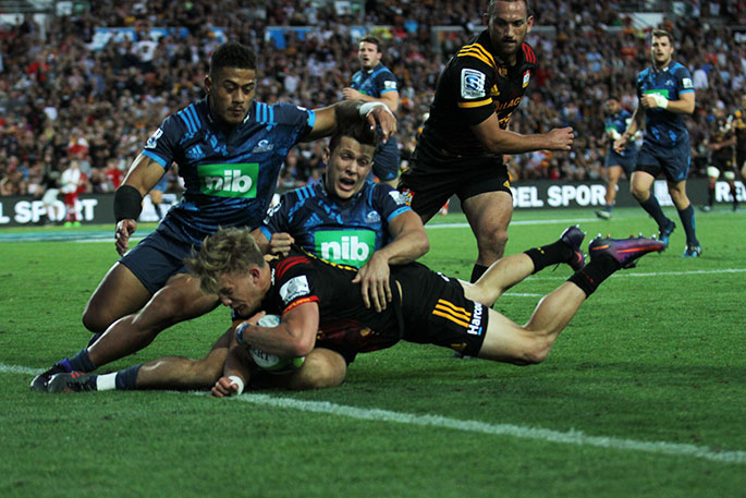 Chiefs 41 (Liam Messam, Damian McKenzie, Hika Elliot tries, Lachlan Boshier, James Lowe, Anton Lienert-Brown; Aaron Cruden 4 cons, pen) Blues 26 (Patrick Tuipulotu, Charlie Faumuina, Rene Ranger tries; Ihaia West con, 3 pens). HT: 22-9