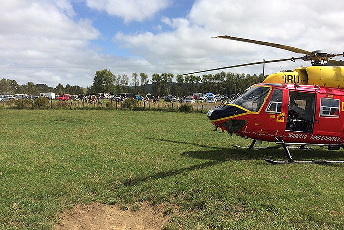 The Waikato Westpac Rescue Helicopter was dispatched on back to back to flights to an organised farm/trail ride motorcycle event on the Highway 22 Road near Naike, west of Huntly.