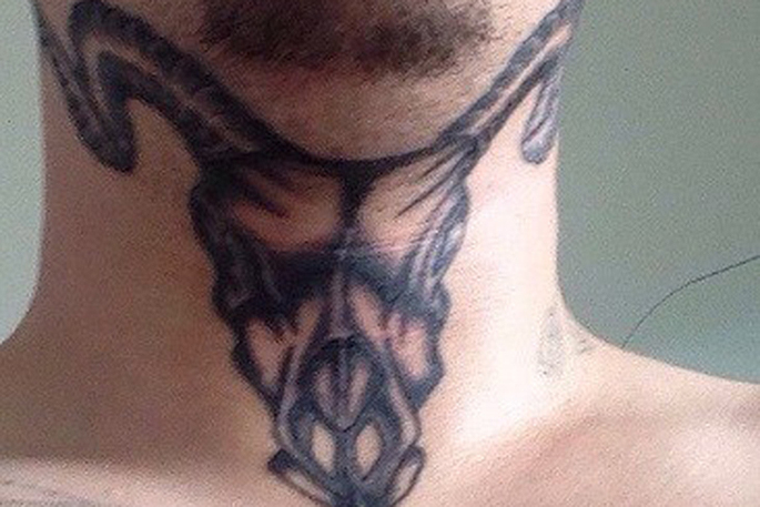 Police say he is a couple of distinctive tattoos, including one on his neck and one on his hand.