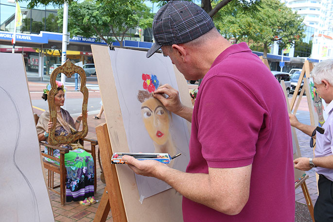 Bay of Plenty and Tauranga MPs Todd Muller and Simon Bridges, plus Tauranga Mayor Greg Brownless and councillor Bill Grainger were in Tauranga's CBD painting portraits and trying their hand at pottery during a public event run by Tauranga Sunrise Rotary Club and The Incubator.