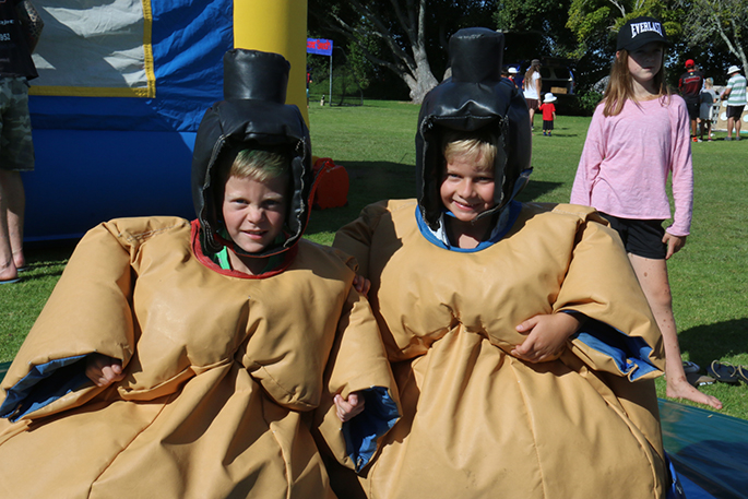 Marcel Hodgson, 7, and Benji Easther, 7, after their sumo match.