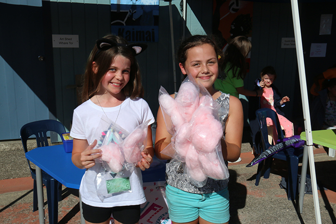 Adison Price, 9, and Serenity Johnson, 11, selling candy floss.