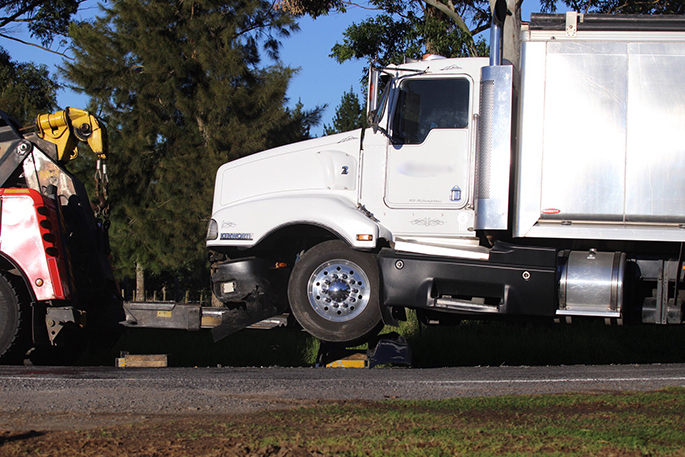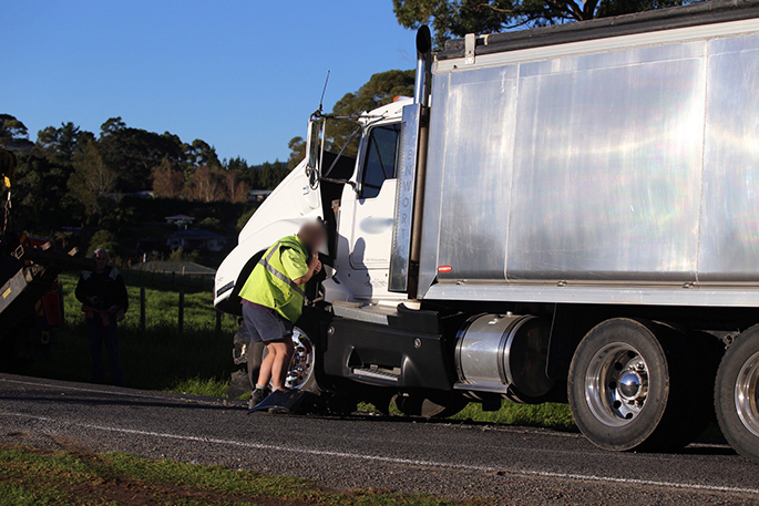 One lane of the road was blocked, before a heavy haulage tow truck was called to tow the truck and trailer unit from the scene.
