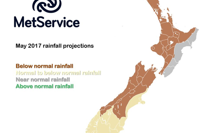 A drier-than-usual May is forecast for most of the country, except for Wairarapa, Hawke's Bay and Gisborne (where closer to normal May totals are predicted).