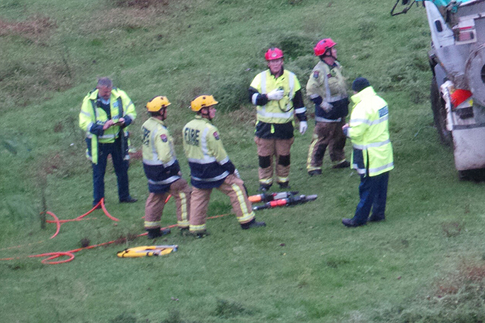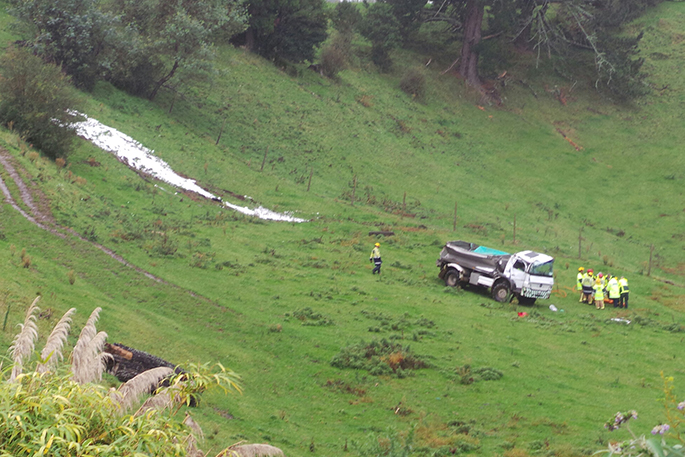 'The truck has come off of a farm track and rolled several times before it came to a stop near the bottom of the gully.